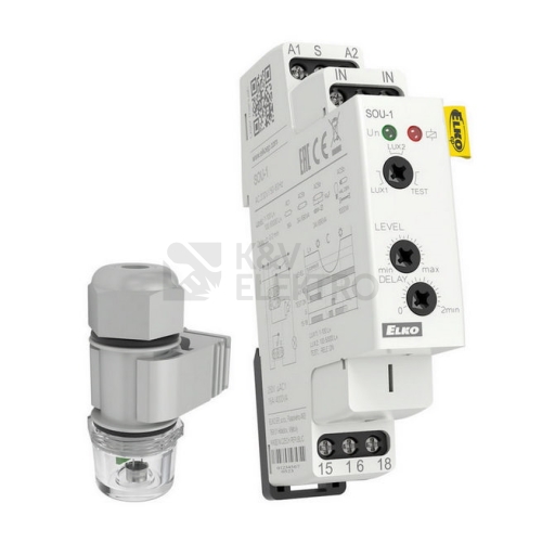 Soumrakový spínač SOU-1 UNI od českého výrobce ELKO EP slouží pro ovládání osvětlení na základě úrovně intenzity okolního světla. Dostanete jej společně s externím čidlem SKS 100. Spínač využijete pro spínání například osvětlení na zahradě, u brány, ale i pro osvětlení výloh a reklamních ploch. Specifikace soumrakového spínače ELKO EP SOU-1 UNI s externím čidlem SKS 100 2101 standard Soumrakový spínač SOU-1 z výroby české společnosti ELKO EP snímá úroveň světla pomocí externího čidla SKS, které je dodáváno společně s ním. Úroveň osvětlení je u tohoto spínače nastavitelná ve dvou rozsazích a to 1 – 100 lx a 100 – 50 000 lx. Taktéž lze nastavit časovou prodlevu v rozmezí 0 – 2 minuty, aby nedocházelo k sepnutí kvůli krátkodobému výkyvu úrovně okolního světla. K tomu může dojít například vlivem světlometů kolem projíždějícího automobilu. Všechna tato nastavení provedete snadno pomocí potenciometrů na přední straně soumrakového spínače. Stav výstupu indikuje červená LED. Externí čidlo SKS 100 je dodáváno společně s plastovým držákem, díky němuž jej snadno umístíte na stěnu či jinou plochu. Čidlo nabízí stupeň krytí IP65, což znamená, že odolá tryskající vodě ze všech úhlů při průtoku 12,5 litrů za minutu ze vzdálenosti 3 metrů a po dobu nejméně 3 minuty. Nabízíme různé soumrakové spínače a spínací hodiny i další modulové a paticové přístroje. Pořídit si u nás můžete i soumraková či pohybová čidla. Rozměry soumrakového spínače ELKO EP SOU-1 jsou 90 mm x 17,6 mm x 64 mm, rozměry externího čidla 66 mm x 23,5 mm. Technické detaily soumrakového spínače SOU-1 UNI Soumrakový spínač SOU-1 je konstruován pro napětí 230 V a proud 16 A. Pracovní teplota soumrakového spínače je -20 až + 55 °C a externího čidla -30 až +70 °C. Spínač SOU-1 UNI lze namontovat na DIN lištu. Délka propojovacího vodiče od spínače k čidlu může být maximálně 50 metrů. Vždy se řiďte postupem od výrobce a montáž provádějte jen tehdy, jste-li k takovému úkonu oprávněni. V opačném případě přenechte instalaci na odborníkovi s příslušným certifikátem. Certifikáty výrobku Soumrakový spínač Elko EP SOU-1 UNI i s ním dodávané externí čidlo splňují příslušné normy ČSN. O společnosti ELKO EP Ryze česká společnost ELKO EP je jedním z hlavních světových výrobců domovních, kancelářských a průmyslových elektronických zařízení. Téměř 30 let dodává po celém světě relé (více než 200 typů), produkty pro bezdrátové instalace a další produkty. Kromě fyzických výrobků společnost ELKO EP nabízí i návrhy komplexních efektivních řešení. Pobočky ELKO EP naleznete ve 14 zemích. U nás si můžete od ELKO EP pořídit například bezdrátové spínače, spínací hodiny, termostaty, stykače a další produkty.