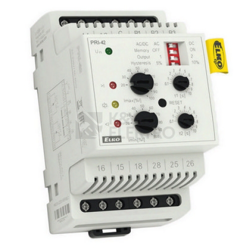 Používá se k hlídání přetížení/odlehčení strojů, motorů, ke kontrole spotřeby nebo diagnostice vzdáleného zařízení (přepálení, zkrat, zvýšený odběr proudu). POPIS Kontrola velikosti napětí ve dvou nezávislých úrovních (přepětí/podpětí). Nastavitelná funkce PAMĚŤ – pro návrat z chybového do normálního stavu je třeba stisknout tlačítko RESET. Funkce druhého relé (samostatně/paralelně). Nastavitelná prodleva pro eliminaci krátkodobých výpadků a špiček pro každou úroveň. Nastavení hlídané úrovně Imax (v % rozsahu) a hlídané úrovně Imin (v % rozsahu – funkce OKNO). Galvanicky oddělené napájení od hlídacích vstupů. TECHNICKÉ PARAMETRY napájecí napětí AC 230 V nebo AC/DC 24 V hlídané rozsahy 1. rozsah: 3.2 – 16 A (vstupní odpor 2.3 m?, max. trvalý proud 16 A) 2. rozsah: 1 – 5 A (vstupní odpor 11 m?, max. trvalý proud 7.3 A) 3. rozsah: 0.32 – 1.6 A (vstupní odpor 23 m?, max. trvalý proud 1.6 A) výstupní kontakt: 2x přepínací 16 A/250 V AC1 (AgNi, 4 000 VA) pro každou sledovanou úroveň proudu v provedení 3-MODUL, upevnění na DIN lištu