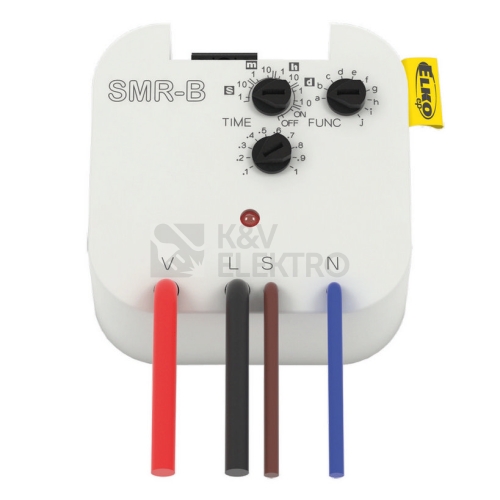 Multifunkční relé určené pro montáž do instalační krabice SMR-B pod tlačítko nebo vypínač do stávající elektroinstalace výhodné a rychlé řešení standartního vypínače za časově ovládaný a nebo tlačítkově ovládané paměťové relé - 4-vodičové připojení - 10 funkcí - spínací prvek relé 16A/4000VA, 250V AC1 - umožňuje spínaní zářivek i úsporných žárovek a LED - je vhodné pro spínání větších zátěží něž u SMR-T, SMR-H, například impulsní relé, schodišťový automat, spínání topných žebříků v koupelnách - samostatný galvanicky oddělený vstup AC/DC 5-250 V, například pro ovládání ze zabezpečovacího systému Funkce Funkce a - zpožděný návrat na náběžnou hranu: Výstup odčasuje při sepnutí spínače. Každým dalším stiskem (max. 5x) se doba času zvyšuje. Dlouhým stiskem se výstup vypne. Funkce b - zpožděný návrat na sestupnou hranu: Výstup odčasuje po vypnutí tlačítka, ale sepne okamžitě. Funkce c - zpožděný návrat na sestupnou hranu: Po vypnutí tlačitka výstup sepne a odčasuje. Funkce d - cyklovač začínající impulsem: Výstup cykluje v pravidelných intervalech, cyklovač začíná impulzem. Funkce e - posunutí impulsu: Zpožděný rozběh po sepnutí spínače a zpožděný návrat po jeho vypnutí. Funkce f - zpožděný rozběh: Zpožděný rozběh po sepnutí spínače až do jeho vypnutí. Funkce g - impulsní relé: Stiskem zapne a dalším stiskem vypne výstup, na délce stisku nezáleží, potenciometrem lze nastavit zpoždění reakce na tlačítko a tím eliminovat odskok kontaktu tlačítka. Funkce h - impulsní relé se zpožděním: Stiskem zapne a dalším stiskem vypne výstup, pokud k němu dojde před vypršením času. Funkce i - cyklovač začínající mezerou: Výstup cykluje v pravidelných intervalech,cyklovač začíná mezerou. Funkce j - zpožděný rozběh do vypnutí: Zpožděný rozběh po sepnutí spínače až do vypnutí napájení nebo dalšího stisku spínače