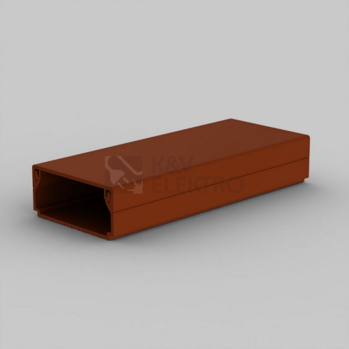 Lišta hranatá 40x20, tmavé dřevo - hnědá, 2 m, karton. Klasický tvar. Určena pro montáž na stěnu, nebo na strop. Dvojitý zámek víka zvyšuje tuhost lišty a zajišťuje pevnější fixaci víka.