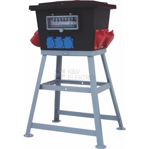 Staveništní rozváděč PICOLLO Materiál skříně: nárazuvzdorný polyetylen Barva skříně: černá, Nosný rám: žárově pozinkovaná ocel Krytí: IP 44 Zásuvky: 3x zásuvka 230 V/16 A 1x zásuvka 400 V/16 A 1x zásuvka 400 V/32 A Proudový chránič: 1xFI 4/40/0,03A Jištění: 3x1/16A 1x3/16A 1x3/32A Vypínač: 1x uzamykatelný hlavní vypínač Připojení: 1x přívodka 400 V/32 A