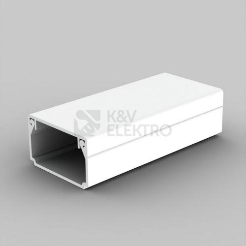 Lišta hranatá 25x15, bílá, 2 m, folie. Klasický tvar. Určena pro montáž na stěnu, nebo na strop. Dvojitý zámek víka zvyšuje tuhost lišty a zajišťuje pevnější fixaci víka.