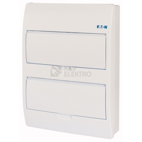 Domovní rozvodnice BC-O-1/18-TW-ECO na omítku s bílými plastovými dveřmi. PARAMETRY: krytí IP 40, barva bílá, 2 přístroj. lišty, 24 modulů. Dodávka obsahuje: • Rozvodnici • Dvířka • Přístrojovou lištu • Svorkovnice PE, N • Montážní návod