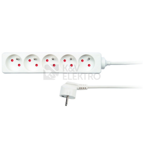 počet zásuvek: 5 průřez vodičů: 3 x 1mm2 typ kabelu: H05VV-F3 lomená vidlice barva: bílá délka: 2m 230V/10A