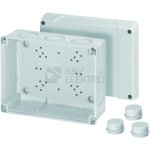 Kabelové rozvodky podle IEC 60670-22, s metrickými predlisy. Urceno pro vnitrní prostredí a chránené venkovní prostredí podle DIN VDE 0100, díl 737. pro teplotu prostredí max. + 40 °C a min. - 25 °C, pri relativní vlhkosti vzduchu 50% pri 40 °C nebo 100% pri 25 °C. Tepelná odolnost materiálu od - 25 °C do 70 °C, Odolnost proti požáru podle VDE 0471, díl 2 - Zkouška žhavou smyckou 750 °C, UL Subject 94 V-2. Krytí podle IEC 60529: IP 55 s nástrcnými kabelovými vývodkami, IP 65 s kabelovými vývodkami, Typ AKM. Materiál: Termoplast, bez halogenu a bez silikonu. Barva: šedá, RAL 7035. Upevnovací šrouby víka z nerezové oceli V2A. Výrobek: HENSEL DK. Jmenovitý prurez: 25 mm²