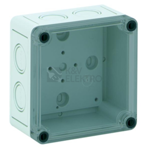 Prázdná skříň, se stupněm krytí IP66, polystyren, Ui=690V AC, Ui=1000V DC, Vnitřní místa pro připevnění, pro standardní instalace ve vnitřním prostoru, Krabice: polystyren, šedá, Víko: polykarbonát, transparenti, Vyrážecí membrány, M20/M25, (7 z boku), Rozměry: 110 x 110 x 66mm