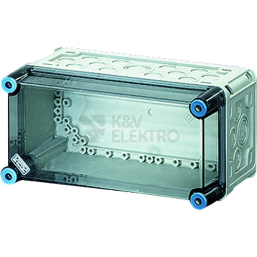 Skříně pro montáž kombinací energetických spínačů do 630 A nebo jako jednotlivé skříně. Z vysoce kvalitního polykarbonátu s ochrannou izolací. Stěnové průchodky s velkými otvory pro elektrické připojení skříní. Kabelové vstupy na všech stěnách skříní přes metrické předlisy nebo montážní příruby. Skříně pro upevnění na stěnu také pomocí vnějších patek nebo s montážními lištami. Prázdná skříň s průhledným víkem. Montážní rozměry š 275 mm x v 125 mm x h 150 mm. Pro montáž přístrojů na montážní desku nebo na nosnou lištu DIN. Max. vestavná hloubka při zabudované montážní desce 146 mm, při zabudované nosné liště 135 mm. Uzávěry víka otevíratelné pomocí nástroje.