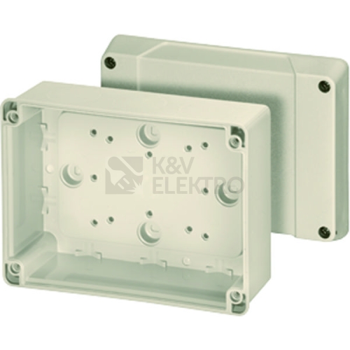 Kabelové rozvodky se stenami skríní bez predlisu. Urceno pro vnitrní prostredí a nechránené venkovní instalace podle DIN VDE 0100, díl 737. pro teplotu prostredí max. + 70 °C a min. - 25 °C, pri relativní vlhkosti vzduchu 50% pri 40 °C nebo 100% pri 25 °C. Tepelná odolnost materiálu od - 25 °C do 90 °C, Odolnost proti požáru podle VDE 0471, díl 2 - Zkouška žhavou smyckou 750 °C, UL Subject 94 V-2. Krytí podle IEC 60529: IP 66. Materiál: PC-GFS-Termoplast, zesílený skelným vláknem povetrnosti odolné, bez halogenu a bez silikonu. Barva: šedá, RAL 7032. Upevnovací šrouby víka z nerezové oceli V2A. Výrobek: HENSEL DK. Vnejší rozmery šxvxh 167 x 125 x 82 mm