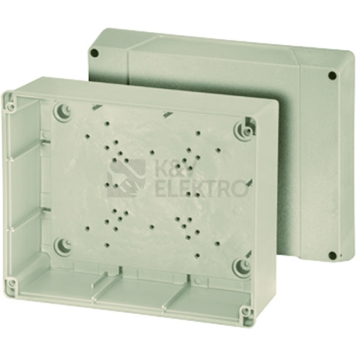 Kabelové rozvodky se stenami skríní bez predlisu. Urceno pro vnitrní prostredí a nechránené venkovní instalace podle DIN VDE 0100, díl 737. pro teplotu prostredí max. + 70 °C a min. - 25 °C, pri relativní vlhkosti vzduchu 50% pri 40 °C nebo 100% pri 25 °C. Tepelná odolnost materiálu od - 25 °C do 90 °C, Odolnost proti požáru podle VDE 0471, díl 2 - Zkouška žhavou smyckou 750 °C, UL Subject 94 V-2. Krytí podle IEC 60529: IP 66. Materiál: PC-GFS-Termoplast, zesílený skelným vláknem povetrnosti odolné, bez halogenu a bez silikonu. Barva: šedá, RAL 7032. Upevnovací šrouby víka z nerezové oceli V2A. Výrobek: HENSEL DK. Vnejší rozmery šxvxh 260 x 210 x 116 mm