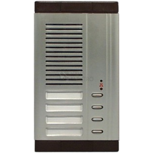 Modul elektrického vrátného EV94, čtyři vyzváněcí tlačítka 4FP 111 38/S1 Modul elektrického vrátného TT94 s trvalým osvětlením se používá jako samostatný modul tlačítkového tabla. Modul nelze použít do sestav tlačítek. Je osazeno jmenovkami a tlačítky pro vyzvonění domácího telefonu. Osvětlení jmenovek zajišťují LED diody, které svítí trvale Vyzváněcí tlačítka: 4 Moduly jsou vyrobeny ze silnostěnného eloxovaného hliníkového profilu.