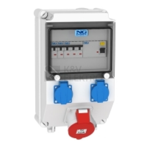 Zásuvka 1x CEE 32A 5p 400V, 2x 16A 230V, chránič 4p, jističe