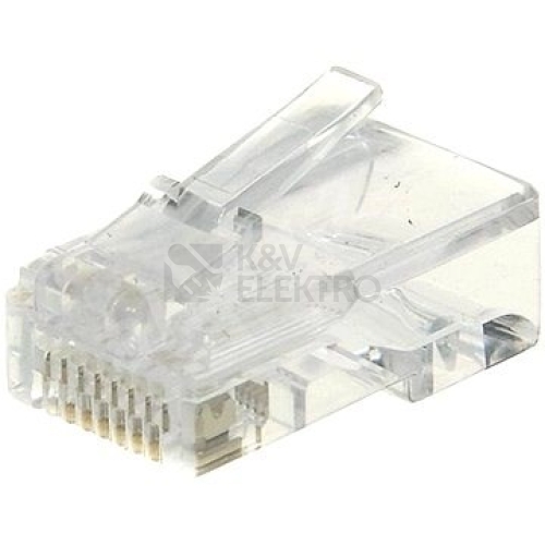 Konektor RJ45 8p8c Cat.5e UTP patří k v současnosti nejpoužívanějším konektorům pro zapojení UTP kabelů. Používá se třeba ke spojení xDSL modemů, ISDN zařízení a podobně. Konektor spadá do kategorie 5e a jedná se o vidlici (samce). Specifikace konektoru RJ45 8p8c Cat.5e UTP RJ45-DK Konektor RJ45 8p8c Cat.5e UTP je třeba spojit s vhodným kabelem pomocí krimpování. Jedná se o nestíněný konektor na kulatý profil kabelového pláště a piny se zlacením 30 µ. Kabely s připevněnými konektory RJ45 pak můžete například propojit počítač, herní konzoli či jiné zařízení s routerem, nebo vybudovat domácí či firemní datovou síť. Kromě datových konektorů nabízíme i další elektroinstalační materiál, jako jsou třeba modulové a paticové přístroje, rozvodnice a rozvaděče, svorkovnice či pojistky. Najdete u nás i bohatou nabídku kabelů. Vybírat můžete také z nejrůznějšího nářadí a měřicích přístrojů, kde nechybí lisovací (krimpovací) kleště, odizolovací nářadí a štípací kleště na kabely. Certifikáty výrobku Konektor RJ45 8p8c Cat.5e UTP splňuje příslušné normy ČSN.