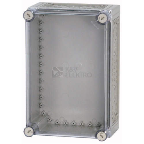 Skříňka s průhledným víkem, material: Polykarbonát, odolná proti nárazům, stupeň krytí IP65, patentované upevňovací šrouby víka s in tegrovaným vyrovnáním přetlaku, s metrickými vylamovacími otvory ve všech bočnicích, přívod vedení nahoře a dole vždy=2xM50/32 a 6xM25/16 a 8xM20, po straně vždy=1xM50/32 a 6xM25/16, upevňovací oka k upevnění na stěnu, upevňovací šrouby s možností plombování, bočnice vyrážecí, jako panelové kryty lze obestavět přidáním bočnic, RAL 7032, štěrkově šedá (dolní část skříňky), průhledná, bezbarvá (víko), vestavná hloubka s montážním plechem=150 mm, provedení krytu: průhledné, provedení dolní díl: předem ražené, kryt lze volitelně dovybavit válcovým zámkem DVZ...-CI