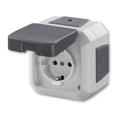 Zásuvka jednonásobná IP54, s ochr. kontakty (podle DIN), s víčkem, šedá