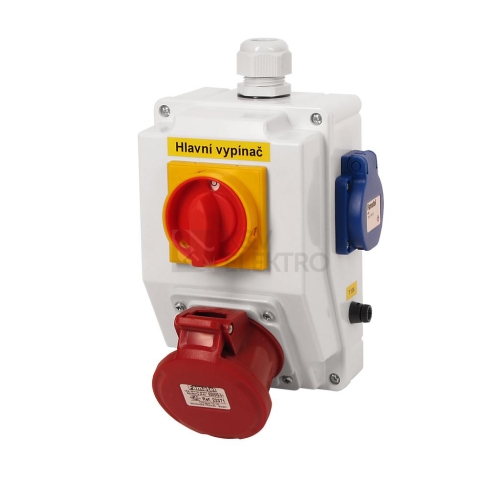 Zásuvková krabice FAMATEL sb210 s hl. vypínačem 0-1, IP44, 1x230V/16A, 1x400V/16A/5, pouzdro: rozměr 195x120x105mm, barva: světle šedá, IK08, rozměrová a tvarová stálost -25°C +85°C, zkouška žhavou smyčkou 650°C, stupeň samozhášivosti HB (UL94), materiál ABS, aplikované normy IEC 61439-3.Zásuvková krabice FAMATEL sb210 s hl. vypínačem 0-1, IP44, 1x230V/16A, 1x400V/16A/5 bez jištění 400 V zásuvky (nutno jistit a chránit přívodním kabelem), zásuvka 1x230V/16A (s ochranným kolíkem dle ČSN) je odjištěna pojistkou 10 A / 230 V (5x20 mm), rozměry použitého pouzdra: 195x120x105mm, plastová, materiál ABS, IK08, zkouška žhavou smyčkou 650°C, bezhalogenová a UV odolná, montáž na povrch, barva: světle šedá, rozsah teplot -25°C +85°C, aplikované normy: IEC 61439-3, balení: 1ks (fólie), hladké stěny s horním prolisem pro vývodku M25, max. připojitelný vstupní kabel = 5x6 (Cu), dodáno s průvodní dokumentací.