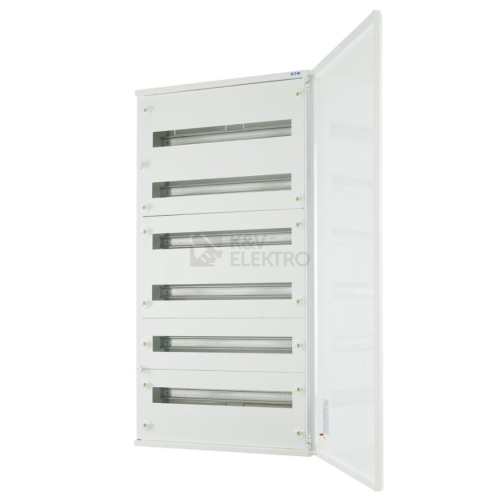 Velkoobsahová rozvodnice BF-O-6/144-G-C na omítku s plnými dveřmi. PARAMETRY: krytí IP 30, barva šedá, hloubka 140 mm, 24 TE v řadě, 6 přístroj. lišt. Kabelové průchodky součástí dodávky.