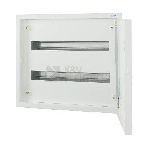 Velkoobsahová domovní rozvodnice EATON BF-U-2/48-C je vysoce kvalitní rozvodnice pod omítku s 2 x 24 moduly. Je vyrobena z plastu, má plná dvířka a nižší krytí, takže se hodí především pro domovní aplikace. Součástí zboží je také montážní rám s přístrojovými lištami a N+PE svorkovnice. Bílá rozvodnice pod omítku EATON BF-U-2/48-C s plnými dveřmi má 48 modulů (2 řady po 24 M). Je vyrobena z plastu (stupeň krytí IP30) a rozměry činí 470 x 588 x 127 mm. Vybírejte ze všech domovních rozvodnic na našem e-shopu. Nabízíme také další druhy rozvaděčů: elektroměrové rozvaděče, stavební rozvaděče a zásuvkové skříně, datové rozvaděče či HUP. Pořídit u nás můžete i elektroměry, jističe, proudové chrániče a další modulové přístroje. O společnosti Eaton Eaton Corporation je společnost působící ve 175 zemích světa, která byla založena ve Spojených státech a nyní sídlí v Irsku. Do této nadnárodní společnosti patří i Eaton Elektrotechnika, která se před integrací do skupiny Eaton v roce 2009 jmenovala Moeller. Jedná se o výrobce přístrojů pro domovní a průmyslové elektroinstalace, přístrojů pro distribuci elektrické energie a záložních zdrojů. V našem sortimentu najdete jističe do 125 A, proudové chrániče, rozvaděče a rozvodnice či pojistky. Podívejte se na kompletní sortiment Eaton na našem e-shopu.