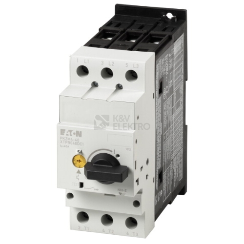 Spouštěč motorů podle ČSN/EN60947, 3pólový konstrukční velikost PKZM4, s nastavitelným spouštěčem při přetížení nezpožděným spouštěčem při zkratu, citlivý na výpadek fáze, šroubovaná montáž a montáž zaklapnutím západky, jmenovité provozní napětí Ue 690V, stupeň krytí IP20, chráněn před dotykem prstem podle VDE 0106 d. 100, příslušenství k dodání: pomocné spínače, napět'ová spoušt'