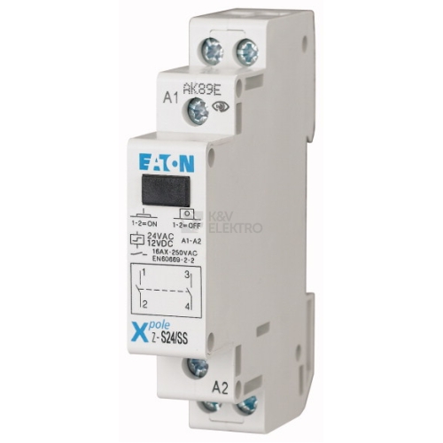 Impulsní relé, řídicí napětí 24V AC / 12V DC Impulzní relé (paměťové) pro spínání a vypínání obvodů osvětlení, klimatizace, vytápění apod. Ovládání impulzem, například běžnými instalačními tlačítky. Každým impulzem dochází ke změně stavu kontaktů relé. • Funkce: 2 spínací kontakty • Jmenovitý povozní proud při 250V AC podle IEC/EN 60669-2-2: 16A • Vestavný rozměr víčka 45 mm, šířka při montáži 1HP (17,5 mm), montáž na montážní lištu, průřez svorky 0,5–10 mm² jednodrátový a vícedrátový / 0,5–6 mm² lankový s dutinkou Impulzní relé Z-S • Relé pro impulzní ovládání elektrických spotřebičů • Splňuje požadavky normy ČSN EN 60669 • Rozměrově kompatibilní s ostatními instalačními přístroji • Proud procházející paralelně zapojenými signálními doutnavkami tlačítek je nutné kompenzovat paralelně zapojeným kompenzačním blokem kondenzátorů Z-S/KO Bezpečnost: • Možnost ruční aktivace spínací polohy tlačítkem • Všechny svorky (cívka i kontakty) mají ochrannou posuvnou clonku zabraňující připojení vodičů pod svorku • Vyrobeno z nehořlavých materiálů neobsahujících chlór ani halogeny Výhody: • Nízká provozní hlučnost • Snadné připojení vodičů díky dostatečně dimenzovaným svorkám, které jsou dodávány v otevřeném stavu • Jednoduchá montáž na přístrojovou lištu 35mm • Široká nabídka konfigurace kontaktů O výrobci Eaton Společnost Eaton zahájila svou působnost v České republice v roce 1993 pod názvem Felton & Guileaume. Ten v roce 1998 převzal koncern Moeller GmbH. V roce 2008 proběhla akvizice společnosti a o rok později i přejmenování z Moeller na Eaton. Stále ale zůstává renomovaným specialistou v oboru domovních přístrojů a průmyslové elektroinstalace i přístrojů pro jištění a distribuci elektrické energie. Jejich přístroje jsou mnoho let stejné a oblíbené. Z jejich nabídky můžete vybírat ze široké škály jističů, proudových chráničů, rozvodnic a rozvaděčů a stykačů Eaton. Také u nás naleznete kvalitní motorové spouštěče Eaton. Objevte i vy kvalitu produktů a služeb výrobce Eaton Elektrotechnika, s.r.o.