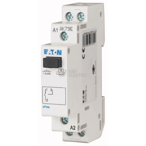 Impulsní relé, řídicí napětí 24V AC / 12V DC, funkce: 1 přepínací kontakt, jmenovitý povozní proud při 250V AC podle IEC/EN 60669-2-2: 16A, vestavný rozměr víčka 45 mm, šířka při montáži 1HP (17,5 mm), montáž na montážní lištu, průřez svorky 0,5–10 mm² jednodrátový a vícedrátový / 0x5–6 mm² lankový s dutinkou