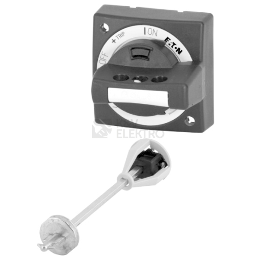 Otočná rukojeť dveřní spojky k použití jako hlavní vypínač podle normy EN 60204 se zásuvnou prodlužovací osou PKZ0-XAH, s možností libovolného zkrácení pro hloubky vestavby 100...200 mm. Unašeč s prodlužovací osou je obsažen v dodávce. S polohou spínače ZAP/VYP z+z (spuštěno) uzamykatelná 3 visacími zámky o tloušťce třmenu 4-8 mm. Nelze použít v kombinaci s VHI20-PKZ0.