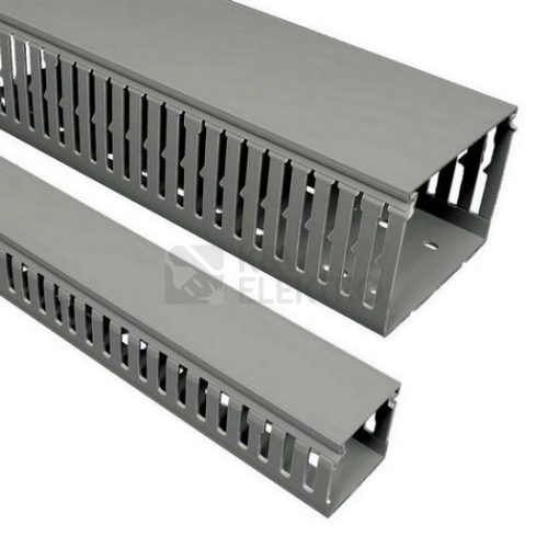 Rozváděčový kanál RK 40X80 LD, tmavě šedý, 2 m, karton. Optimální zavírání, lehká montáž a demontáž, pevně fixovaný kryt, snadné vylomení žebra u dna kanálu. Dodáván včetně víka.