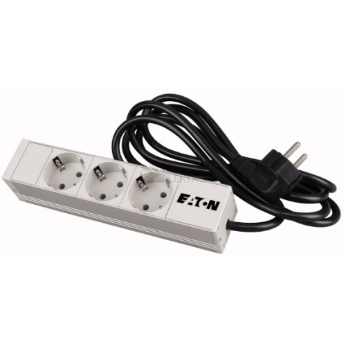10z napájecí panel 3násobný bez spínačů: montáž na 10z lištách, vestavná výška: 1 RU, šikmo uspořádané zásuvky, zásuvky s ochranným kontaktem dle normy DIN 49440, 16A/250V AC, materiál: skříň z hliníku