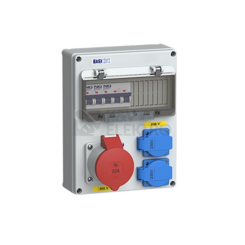 Zásuvka 1x CEE 32A 5p 400V, 2x 16A 230V, jističe