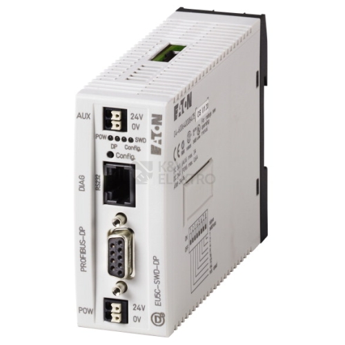 Brána SmartWire DT k připojení na provozní sběrnici a k napájení SmartWire-DT stanic (SWD) a spínacích zařízení. Připojení ke sběrnici PROFIBUS se provádí pomocí 9pólového konektoru SUB-D jako Slave. Automatické rozpoznání přenosové rychlosti v baudech 9,6 kBit/s až 12 MBit/s.Rozsah adres lze nastavit od 1-126 . Připojit lze až 58 SmartWire-DT stanic.