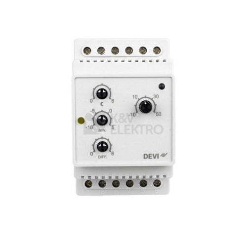 DEVIreg™ 316 je elektronický termostat s upevněním na DIN lištu pro montáž do elektrických skříňových rozvaděčů. Je navržen tak, aby obvod snímače byl galvanicky oddělen od části vysokého napětí. Termostat se používá k regulaci prostorové a podlahové teploty, větrání, chlazení nebo k regulaci odtávání sněhu na střechách, v okapech a svodech, při temperaci potrubí a v podobných aplikacích. Pro snímání teplot se používá buď kabelový snímač nebo snímač teploty vzduchu. Výhody: Noční útlum nastavené teploty Omezovač minimální teploty Nastavitelná hystereze Montáž na DIN lištu Nízká spotřeba v pohotovostním režimu Velký rozsah použití Ochranné oddělení obvodů Soulad s normou: EN/IEC 60730-1 (obecně) EN/IEC 60730-2-9 (termostat)