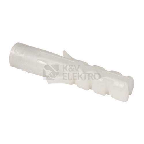 Hmoždinka PA k uchycení do stěn a stropů z tvrdých stavebních materiálů, průměr 6 mm, délka 30 mm, průměr vrutu 3,5-4 mm.
