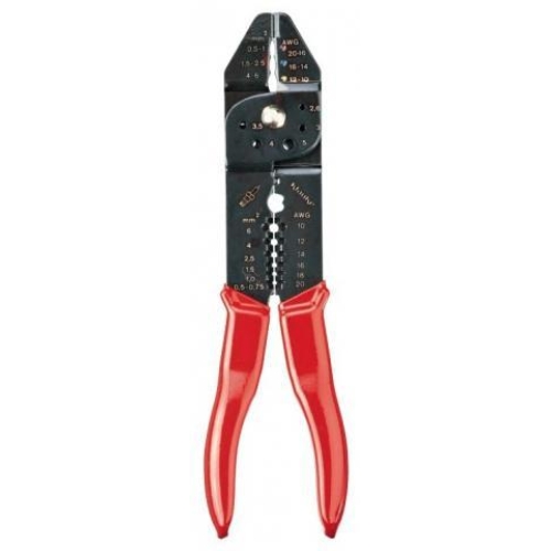 Lisovací kleště K10 lisování pásku a kabelové izolace nastává ve dvou operacích s odizolovávacím zařízením na průřezy 0,5 – 6 mm2, s odřezávačem na šrouby M 2,6 – M 5 a střihačem vodiče Oválné lisování lisovací rozsah: 0,5 – 6 mm2 0,5 – 1 mm2 (červená izolace) 1,5 – 2,5 mm2 (modrá izolace) 4 – 6 mm2 (žlutá izolace) délka: cca 210 mm hmotnost: cca 0,190 kg
