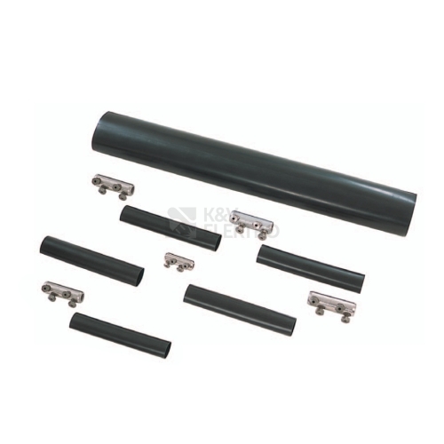 Univerzální kabelový soubor se spojovači pro spojování pětižilových kabelů do 1kV s izolací z PVC, PE a XLPE, vhodné pro použití ve vnitřních i venkovních prostorách, pro uložení v zemi i v izolačních kanálech. Mechanické spojovače: v kabelovém souboru jsou použity šroubové kabelové spojovače pocínované s přepážkou a strhacími šrouby pro vodiče s kruhovými a sektorovými jádry. Rozsah použitých kabelů: Průřez kabelu v mm² Al Cu rm re/se sm rm/sm re 10-35 6/16-35 16-25 10/16-25 4-25 Materiál izolace: teplem smrštitelné trubice z modifikovaného polyolefinu, silnostěnné (vnější plášťová trubice) a středněstěnné (vnitřní trubice pro jednotlivé žíly)s lepidlem na vnitřní stěně. Vlastnosti izolace: pracovní teplota: -55°C až+110°C, min. teplota smrštění: +120°C, dielektrická pevnost: 20 kV/mm, dobrámechanická stálost a odolnost, odolnostvůči chemikáliíma UV záření, podélná vodotěsnost, neomezená skladovatelnost.