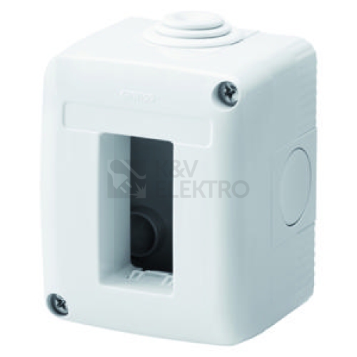 Nástěnná přístrojová krabice 27 Combi prázdná s kapacitou 1 modul Technické parametry: Počet vylamovacích průchodek Ø23 3 Počet stupňovitých průchodek Ø23 1 Stupeň krytí IP40 Stupeň ochrany IK07 Třída ochrany II Barva šedá RAL 7035 Charakteristika plastu bezhalogenový