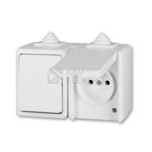 Kombinace přepínače střídavého a zásuvky s ochranným kolíkem a víčkem, IP 44 Spínač 10 AX, 250 V AC Zásuvka 16 A, 250 V AC Upevnění šrouby. Šroubové svorky (pro vodiče max. 2,5 mm²). Pro zajištění uvedeného stupně krytí je nutné u krabice přístroje otevřít odkapní otvor směrem k zemi. Spodní část krabice přístroje lze otočit o 180° pro přívod kabelu zespodu. Design: Praktik Řazení: 6, 2P+PE Barva: bílá Bezpečná elektroinstalace musí být dokonale přizpůsobena prostředí. Využijte na správných místech přístroje se zvýšeným stupněm krytí.