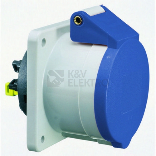 CEE zásuvka vestavná přímá, Quick-Connect32A 3p (2P+PE) 230V (200 do 250V~) 6h IP44 frekvence: 50 a 60Hz kód barvy: modrá RAL 5015 kontakty: nosič kontaktů je vyroben z polyamidu, kontakty jsou vyrobeny z mosazi maximální průřez vodiče: 10,0 mm2materiál krytu: polyamid způsob připojení: bezšroubové pružinové klecové svorkybarva: víčko sklopné modré, kryt šedý rozměry: výška 90 mm, šířka 75 mm, hloubka 89 mm rozměr příruby: svisle 75 mm, vodorovně 75 mm rozteč montážních otvorů: vodorovně 60 mm, svisle 60 mmdalší technické vlastnosti:bezšroubové připojení vodičů QUICK-CONNECT je ověřený, trvanlivý, bezpečný a zcela bezúdržbový systém odolný proti nárazům, vibracím a výkyvům teplot. QUICK-CONNECT s optimálně nastaveným přítlakem svorky na připojovaný vodič zcela eliminuje nedostatky šroubových spojení (možnost přetažení, nebo nedotažení šroubků, slaněné vodiče není třeba ukončovat dutinkami)barevné označení vstupů, pro správné zapojení jednotlivých vodičů (dodržení sledu fází u třífázové elektrické soustavy)