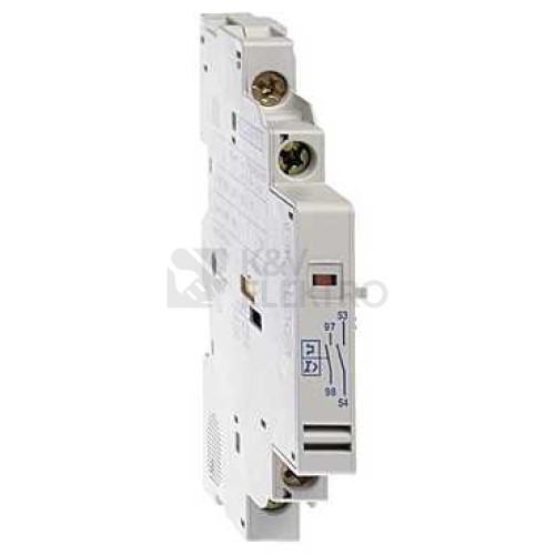 TeSys GV blok pomocných kontaktů - pro motorové jističe GV2 a GV3. 1V signalizační kontakt + 1Z mžikový kontakt. Okamžitý pomocný kontakt určený pro provoz až do 6 A/690 V AC a 6 A/240 V DC. Signalizační kontakt poruchy určený pro provoz až do 2 A / 240 V AC a 1 A / 60 V DC. Instalace na levou stranu jističe (max. 1 mont. bloku), připojení šroubovými svorkami. Certifikováno více standardů (IEC, UL, CSA, CCC, EAC), Green Premium (RoHs/Reach).