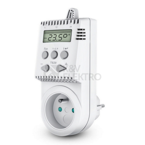Pořiďte si tepelně spínanou zásuvku Elektrobock TS20, jež je v oblasti topenářské techniky novinkou nabízející komfortní řešení ovládání pro elektrické topné soustavy. Automatickou teplotní regulací připojeného spotřebiče můžete ušetřit až 30 % energie pro topení v domácnosti, kanceláři atd. Výhodou je nastavení hystereze od 0,1 °C do 6 °C. Vzhledem k velkým možnostem programu (6 časových úseků a 3 teploty na každý den) si můžete navolit program, který vám bude vyhovovat. Tepelně spínaná zásuvka Elektrobock pro elektrická topidla má rozsah měření 3 °C – 40 °C. Umožňuje na každý den jiný teplotní program a nastavení třech teplotních úrovní (komfortní, úsporná a party). Umožňuje krátkodobé změny teploty programu a regulace teploty po 0,5 °C. Termostat lze snadno ovládat pomocí přehledného displeje. Podívejte se i na další kvalitní termostaty Elektrobock, případně zvažte pořízení termostatu s dotykovou obrazovkou. Vybírat můžete také z obdobných výrobků značek ABB, Schneider, Elko EP nebo Legrand. Prostorovými termostaty můžete efektivně regulovat například podlahové vytápění, elektrické přímotopy či akumulační kamna. Nezapomeňte si přikoupit kvalitní AA baterie. O společnosti Elektrobock Elektrobock je česká společnost, která vznikla v roce 1992 a od začátku se úzce specializovala na vývoj a prodej spotřební elektroniky pro domácnost. V sortimentu E1.cz najdete například domovní zvonky Elektrobock, termostaty, časové relé či pohybová čidla. Prohlédněte si kompletní sortiment této společnosti, který prodává náš e-shop.