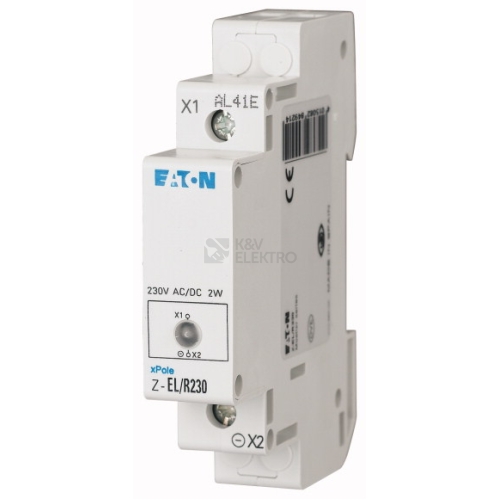 Světelné návěstí, jmenovité provozní napětí LED 230V AC/DC, barva LED červená, svítivost 15 mcd, ztrátový výkon 2W/LED, frekvence blikání typ. 2 Hz, vestavný rozměr víčka 45 mm, šířka při montáži 1HP (17,5 mm), montáž na montážní lištu, průřez svorky 1-10 mm², provedení dle normy IEC/EN 60669, VDE 0632