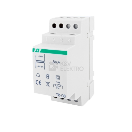 TR 08 trafo zvonkové, vstup 230, výstup 8V, proudové zatížení 1A, příkon 8VA