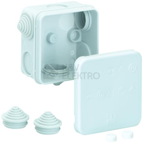 Spojovací krabice, se stupněm krytí IP55, Jmenovitý průřez 2,5mm², Ui=400V AC, Certifikováno podle VDE (DIN EN 60670-1/-22 (VDE 0606-1/-22)), Stupňovitá vývodka, M20, Rozsah těsnění 5-16mm, (1 ze zadu, 7 z boku), Vnitřní místa pro připevnění, pro standardní instalace ve vnitřním prostoru, šedá, bez svorek, Rozměry: 75 x 75 x 42mm