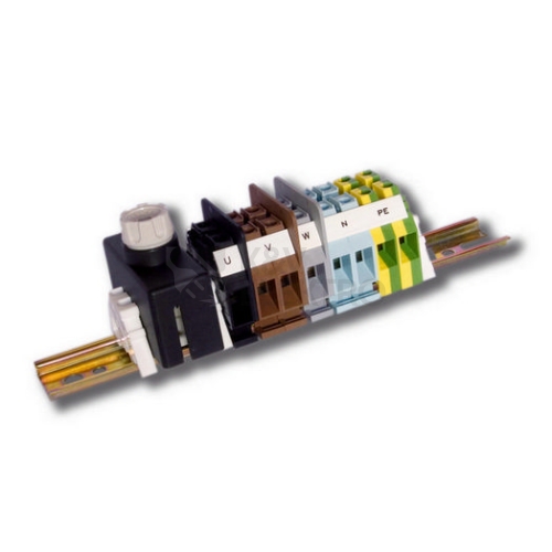 Průchozí, pětivodičová svorkovnice s jedním držákem pojistky E14. Složení svorkovnice: 6 x RSA 16 A 2 x RSA PE 16 A Rozměry: A [mm] 75 B [mm] 73 C [mm] 157 C1 [mm] 40 L [mm] 235 • Materiál izolantu polyamid PA 6, hořlavost V0 dle UL 94, bez halogenů • Nadstandardní povrchová úprava spojovacích i elektrovodných částí • Možnost připojení hliníkových i měděných vodičů • Vodivě spojené svorky PE s lištou DIN • Krytí IP 20 bez nutnosti používání příslušenství či krytů (*) • Oddělení fázových svorek středovými přepážkami • Svorky v sestavách svorkovnic jsou označeny popisem • Certifikace státní zkušebny a soulad s normami EU