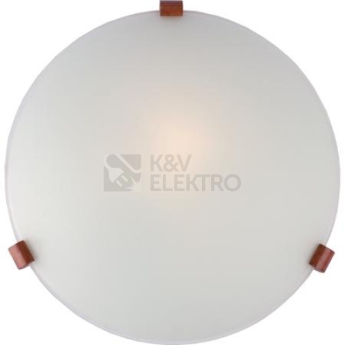 Stropní a nástěnné skleněné svítidlo Woodstock 300 vyniká výraznými dřevěnými packami a bílým sklem. Sklo velmi dobře rozptyluje světlo po místnosti.