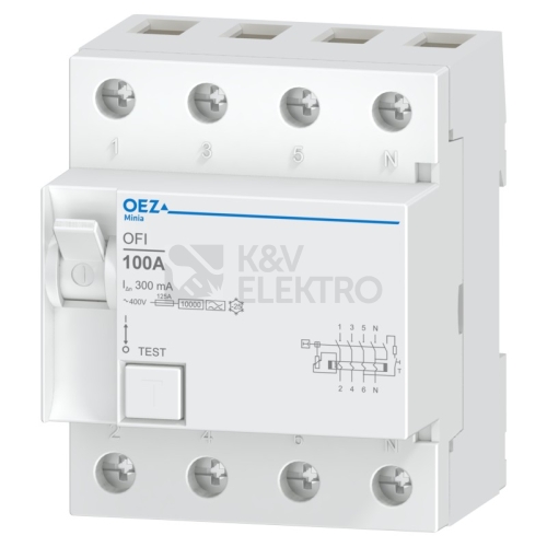 In 100 A, Ue AC 230/400 V, Idn 300 mA, 4pól, Inc 10 kA, typ A