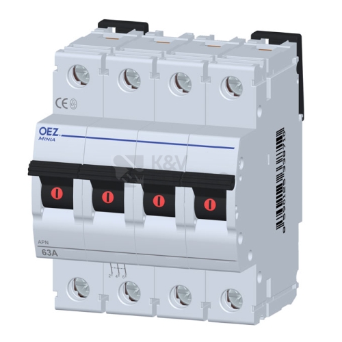 In 63 A, Ue AC 230/400 V, DC 60/220 V, 3+N-pól, šířka 4 moduly