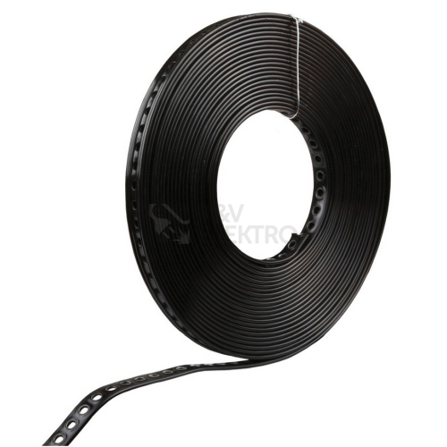 Montážní páska MP 12x0,75mm - kovová (pozinkovaná) + poplastovaná, perforovaná. Šířka = 12mm, tloušťka = 0,75mm, průměr otvoru = 5mm, délka pásky = 10m. Hmoždinka 5x35.