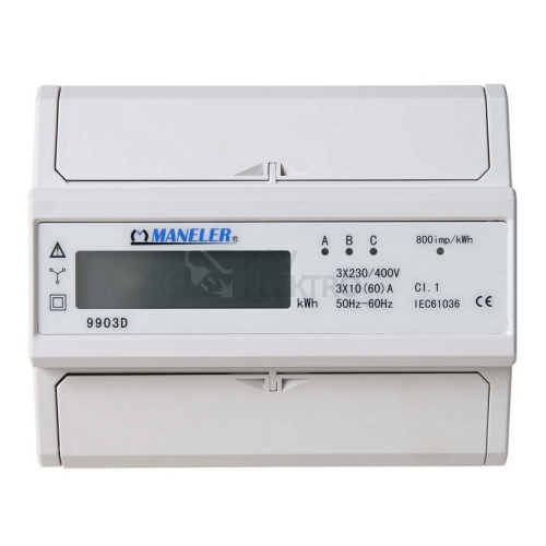 Třífázový jednosazbový elektroměr na lištu DIN, neověřený, LCD