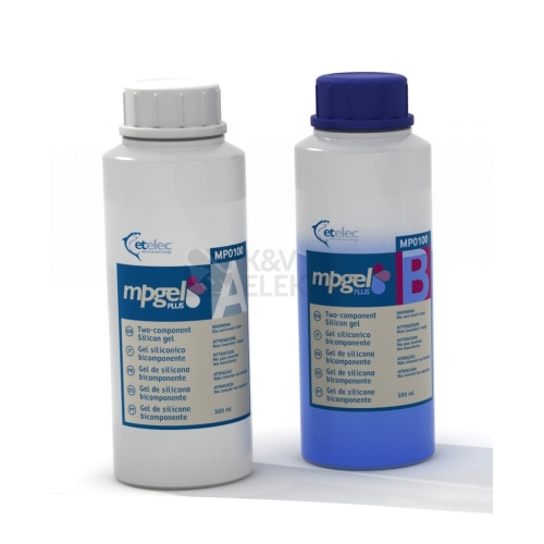Dvousložkový gel pro kabelové spojky, 2x láhev 0,5l, míchací nádobka a míchátko je součástí balení. MP-GEL je dvousložkový silikonový gel pro výplň a izolaci elektrických spojů. Používá se např. v instalačních krabičkách, kde zabraňuje přístupu vlhkosti, vodě a chrání spoj před dalšími vlivy, které mohou mít nežádoucí účinky takovéhoto druhu spojování vodičů. Dvě složky gelové hmoty smíchané v poměru 1:1 jsou ideální pro zalití elektrického spoje a to hlavně díky nízké viskozitě a rychlé době tuhnutí. (Po „vytuhnutí“ gelu zůstává hmota průhledná a „rosolovitá“, díky tomu zůstává spoj lehce rozebíratelný). Při smíchávání teplota gelu nevzroste! Gel nemá žádnou expiraci. Technické parametry: Doba tuhnutí při 23°C: je cca 12min (rozumí se do rosolovitého stavu) Dielektrická pevnost: 25,5 kV/mm Mix. poměr: 1:1 Rozsah teplot při instalaci/montáži: -60 °C až +200 °C Barva: transparentní (průhledná) modrá Splňuje požadavky evr. směrnic: EC Directive 67/548/EEC či 1999/45/EC (bezpečný) ##VIDEO:https://www.youtube.com/embed/pDBdDqMvx08##