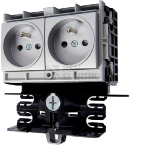 Přístrojová krabice s dvojzásuvkou, na SL lištu výšky 55 mm, dekor ALU