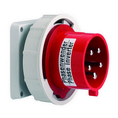 CEE přívodka vestavná přímá se změnou fáze16A 5p (3P+N+PE) 400V (200/346 do 240/415V~) 6h IP67 frekvence: 50 a 60Hz kód barvy: červená RAL 3000 kontakty: nosič kontaktů je vyroben z materiálu odolného vůči vysokým teplotám, kontakty jsou vyrobeny z mosazi, povrch kontaktů je poniklovaný maximální průřez vodiče: 2,5 mm2materiál krytu: polyamid způsob připojení: se šroubovými svorkami barva: límec červený, bajonetový uzávěr šedý, kryt šedý rozměry: výška 86.5 mm, šířka 86.5 mm, hloubka 77 mm rozměr příruby: svisle 85 mm, vodorovně 85 mm rozteč montážních otvorů: vodorovně 70 mm, svisle 70 mm další technické vlastnosti:instalační otvor je ve středu příruby